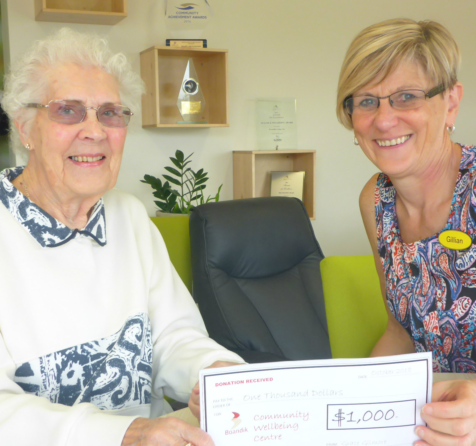 Miller Whan and John have kindly committed $5,000 x 3 years.to support Boandik projects, in recognition of the quality service to the aging Boandik offers in our region.